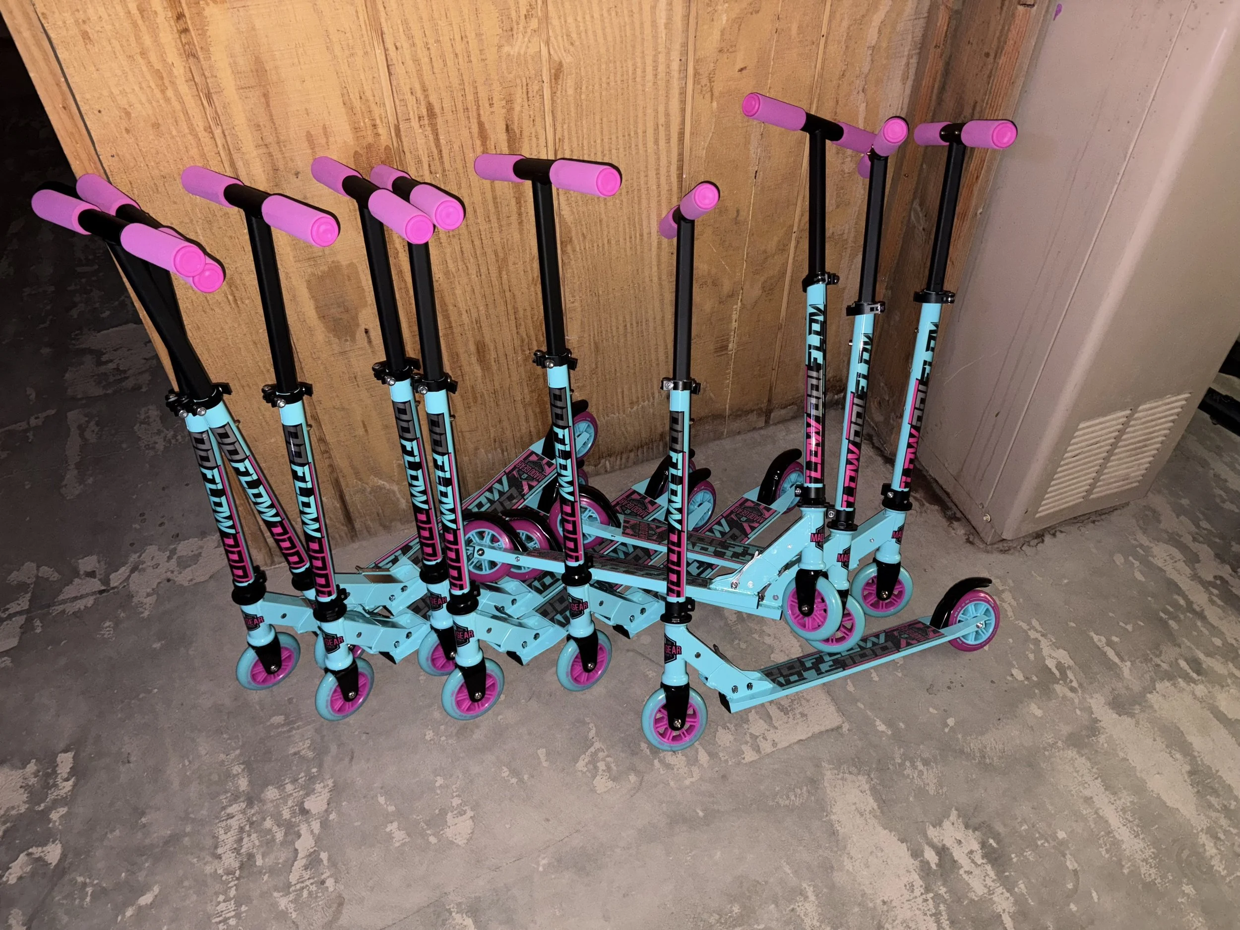 We got 15 more scooters, 6 bicycles, 4 new go-carts, 4 electric scooters, and two ride-on toys.