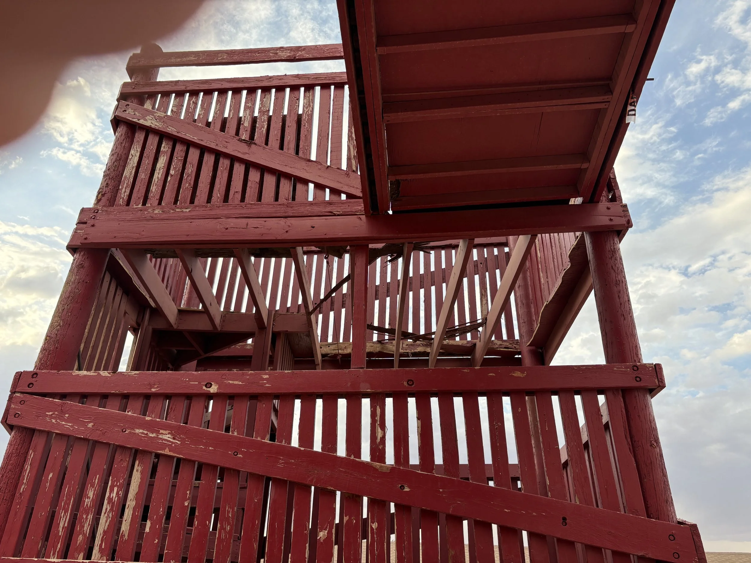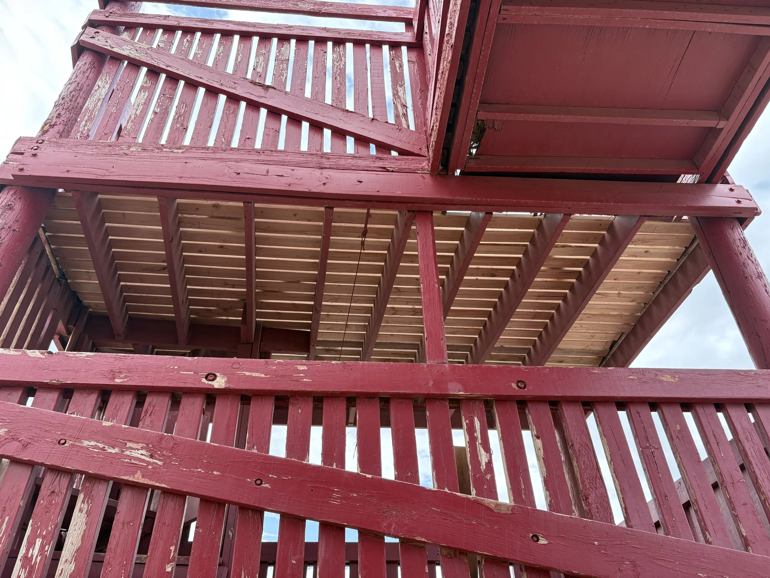 You can see the playground towers need paint and repairs. They were painted around three years ago. The wind and sand tear the paint off.