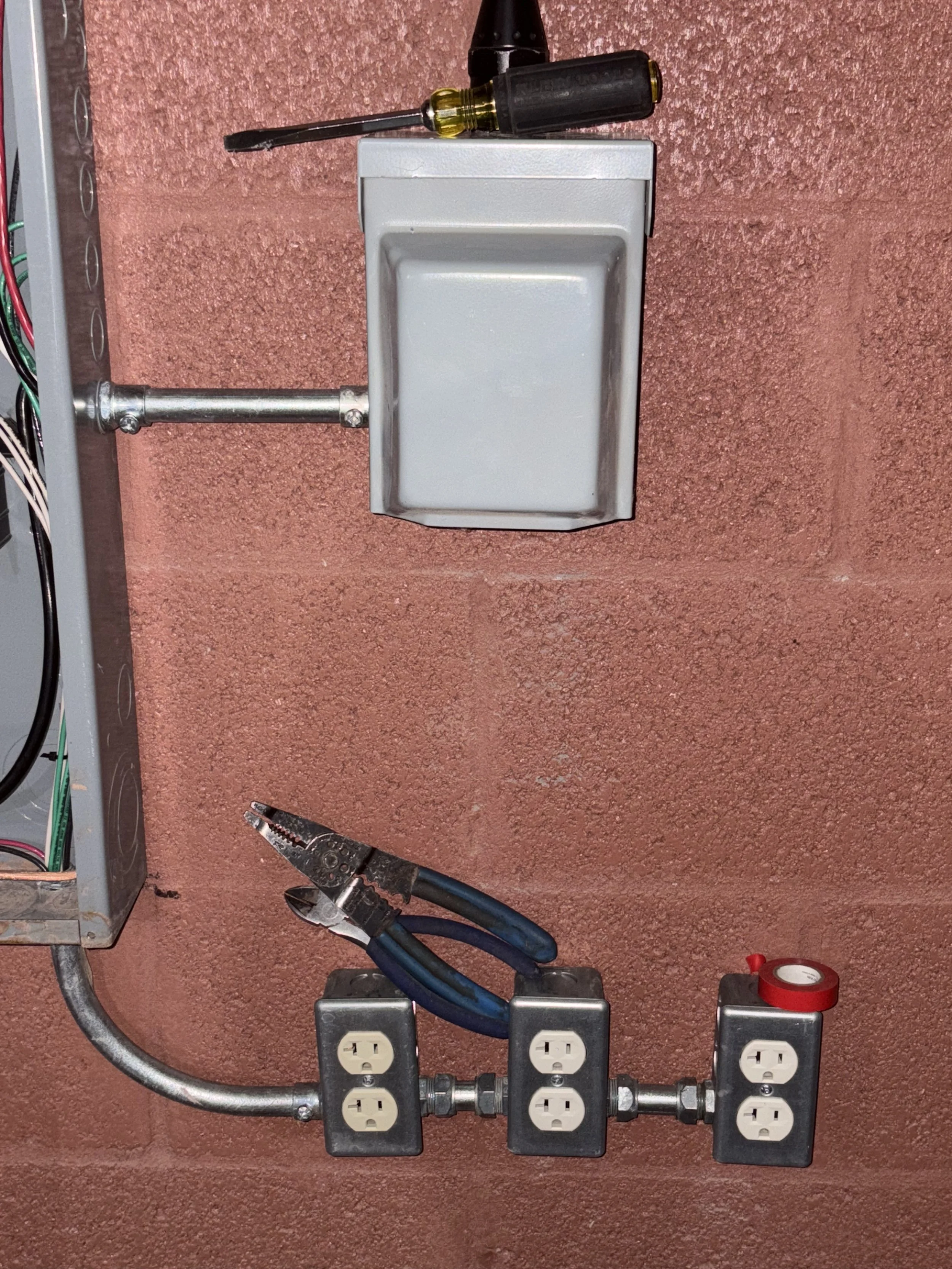 We now have a 50A outlet so we can weld our float and a few 110v outlets.