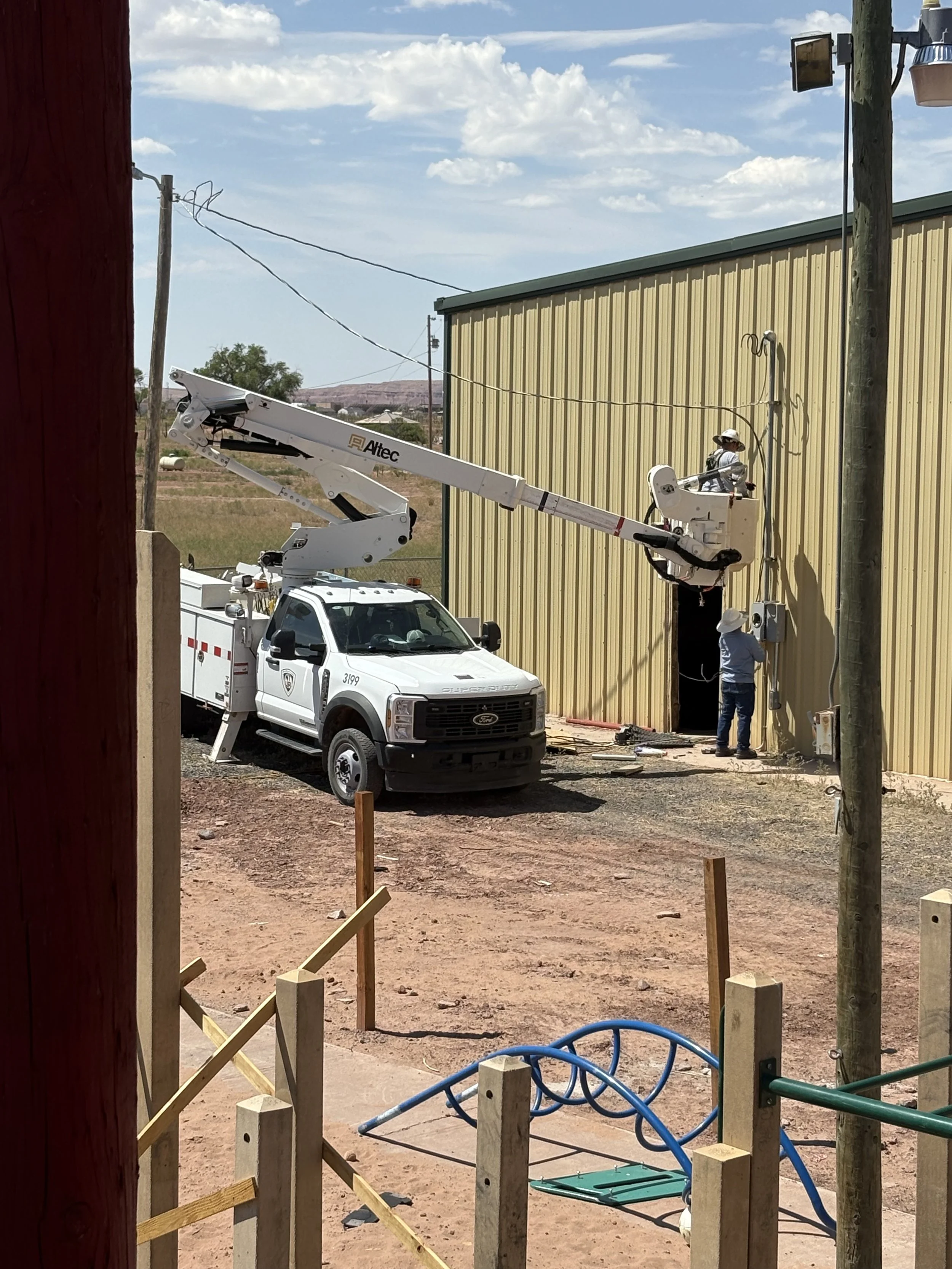 So, the Chinle parade is coming up on August 16th. We like to enter the parade because it is advertising for the Kid’s Church. Last year we finished the parade, turned the corner, and the tongue on our float broke off (And the generator overheated). So this year we are going to be upgrading the float. We have been working to get electricity hooked up in our big building so we can use the welder. The other day NTUA hooked up the electricity (Thanks to the efforts of Daven and Shawna).